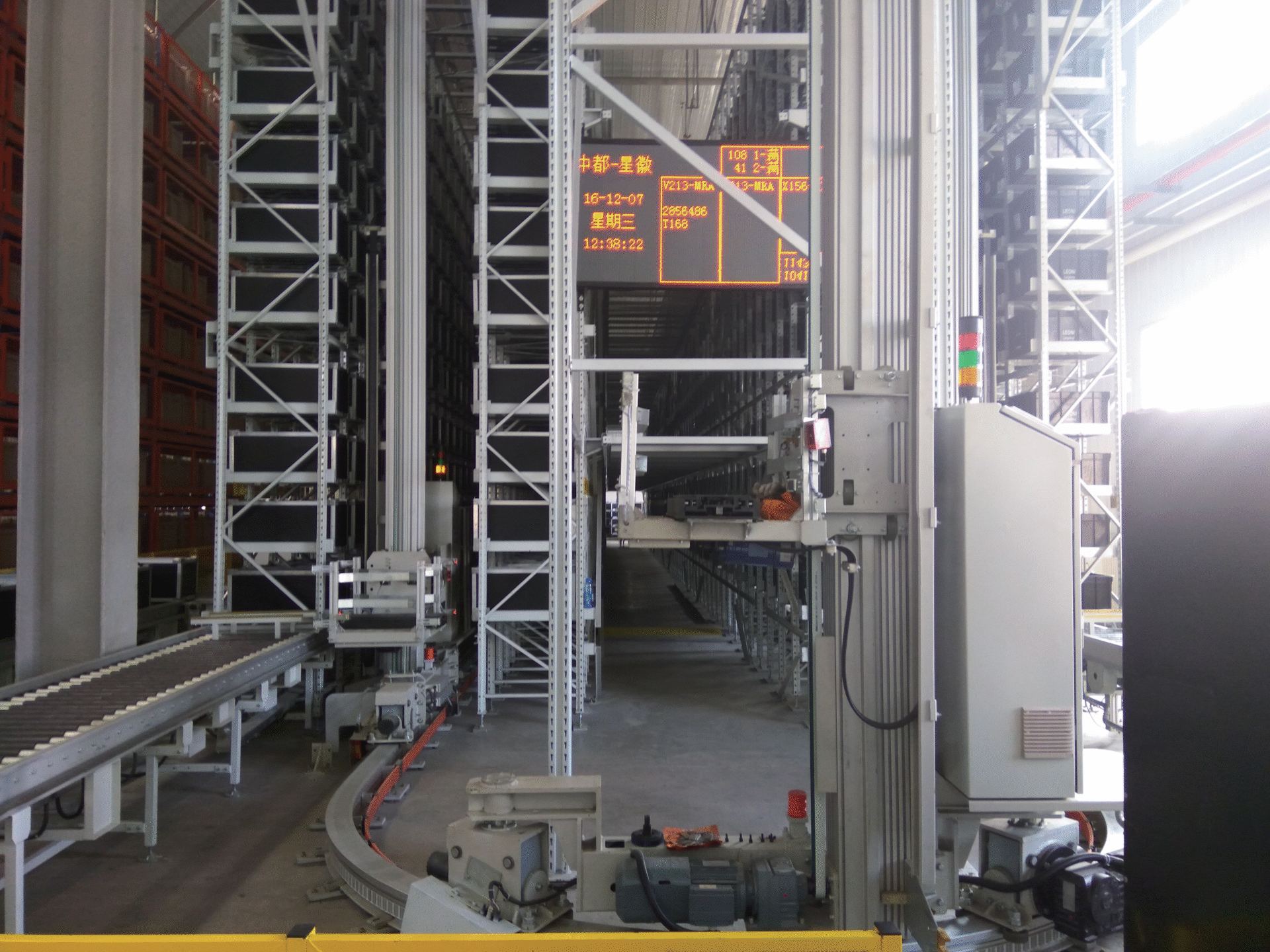 Hệ thống băng tải: Các băng tải tự động đưa thùng hàng từ khu vực nhập hàng đến chân kệ. Sau khi cần cẩu lấy hàng, băng tải tiếp tục đưa thùng đến trạm làm việc của nhân viên