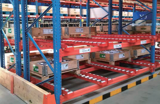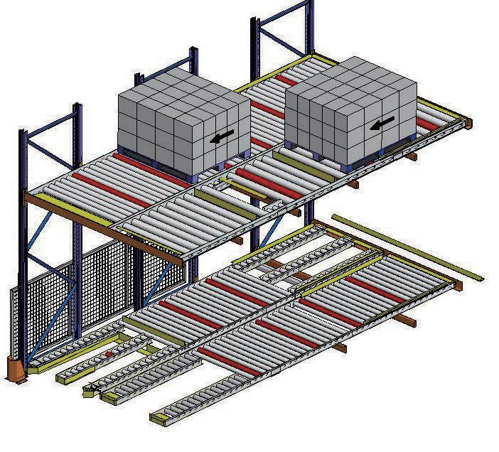 Cấu trúc kệ pallet Live được trang bị hệ thống điều khiển và phanh để giảm thiểu mọi rủi ro. Con lăn phanh, hệ thống định tâm hoặc giữ