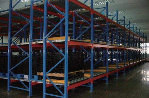 Lưu trữ theo thứ tự, khu vực chờ hoặc khu vực giao hàng trong kho. Kệ trọng lực tạo điều kiện thuận lợi cho việc lưu chuyển hàng hóa.